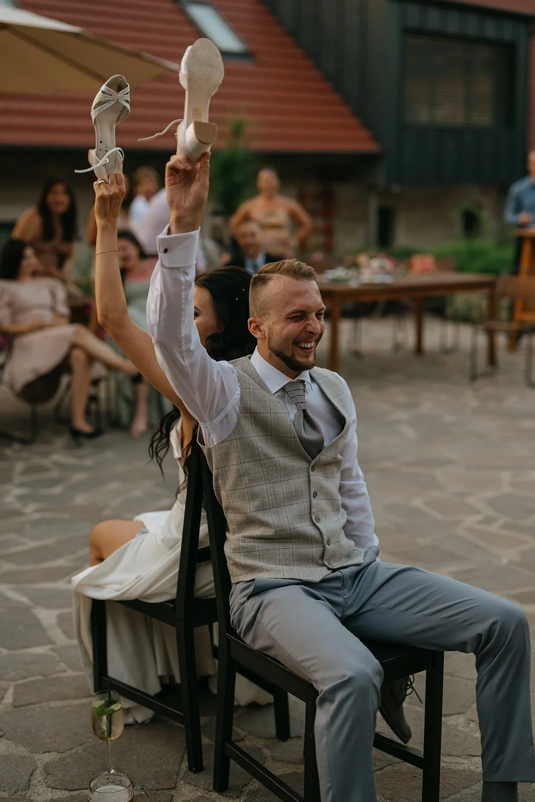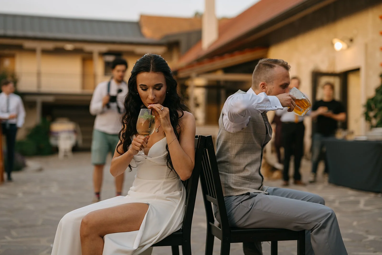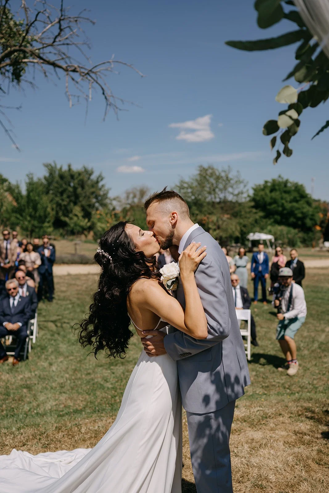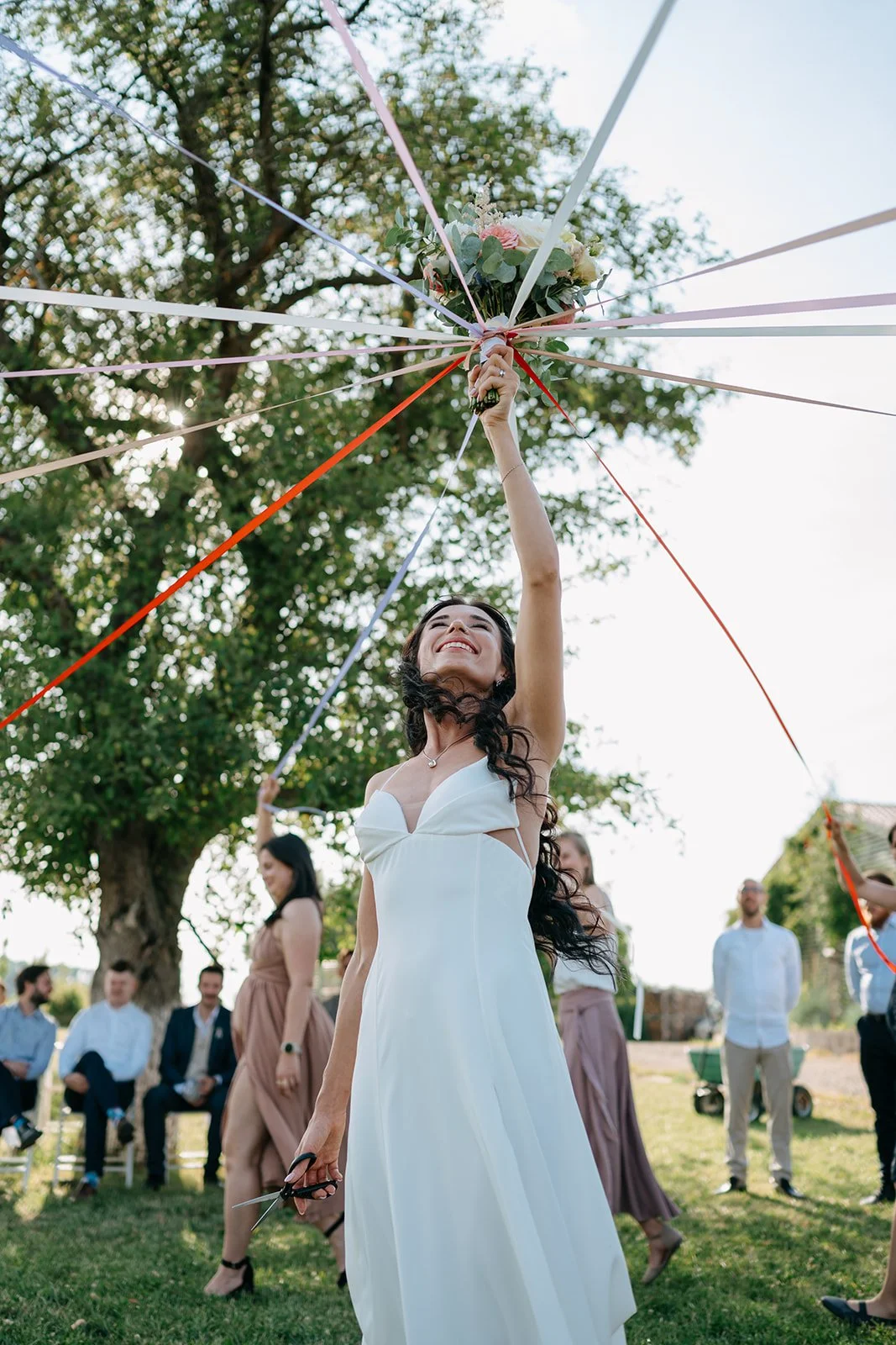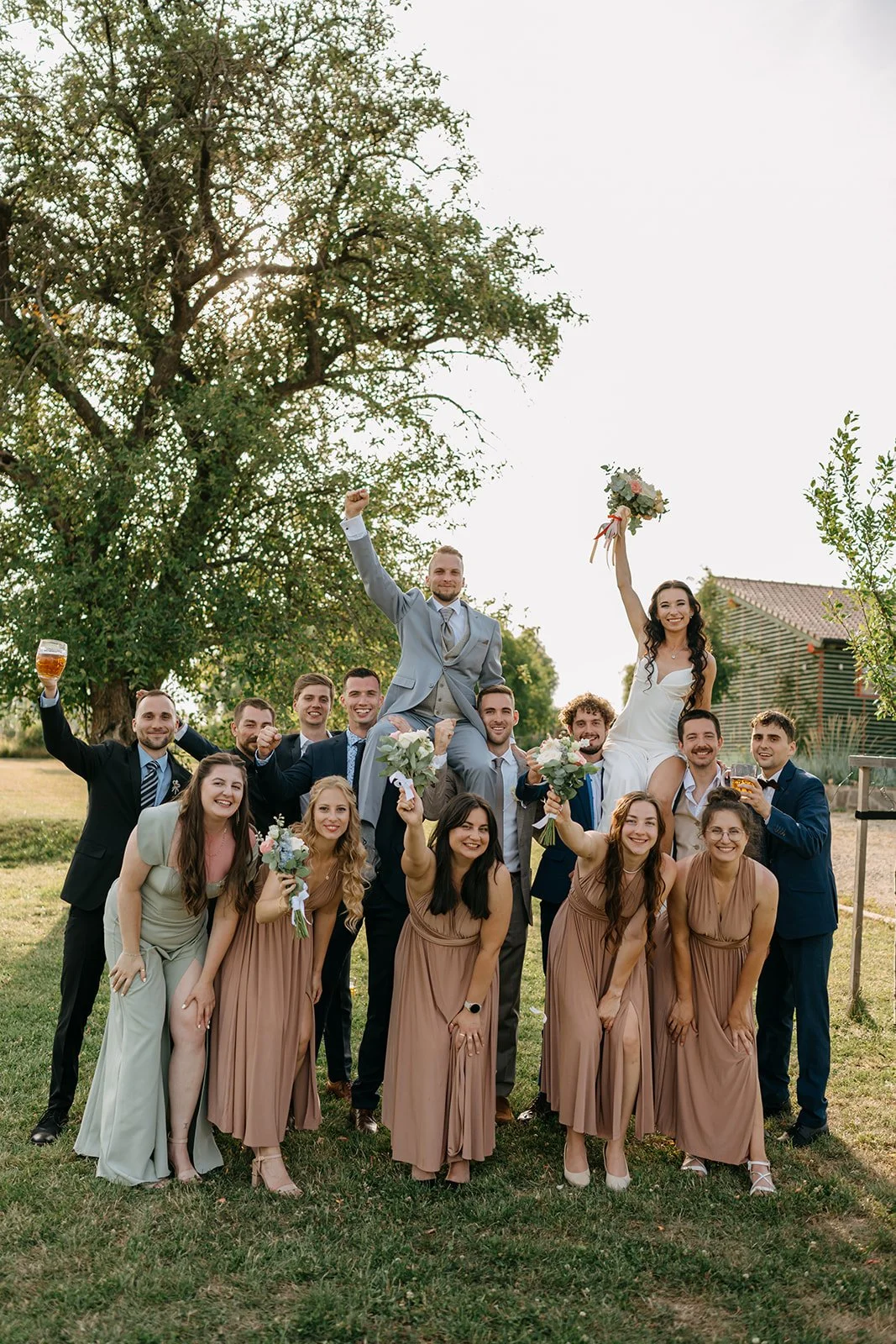 Místo komorního dne se tu sešla velká banda kamarádů, spousta smíchu a energie, která byla cítit od první chvíle. Nechyběly ani vtipné momenty, jako třeba „flower boys“, kteří před obřadem rozdávali vychlazené nápoje a hned nastavili tón celému dni. Uvolněný, lehký, bez zbytečné vážnosti.
