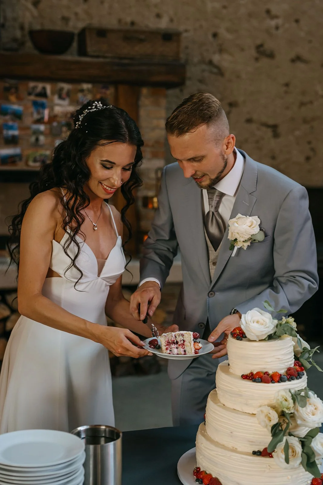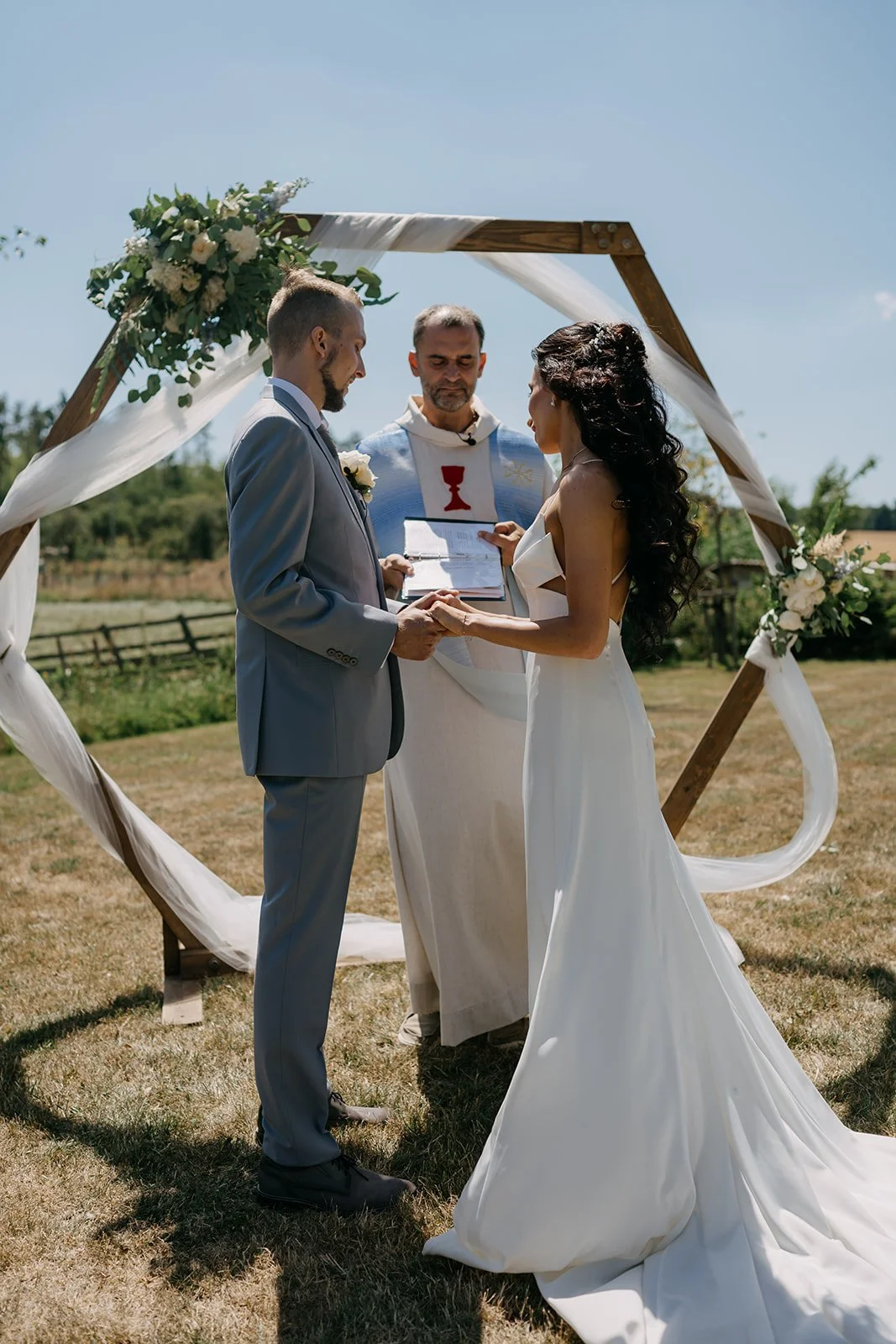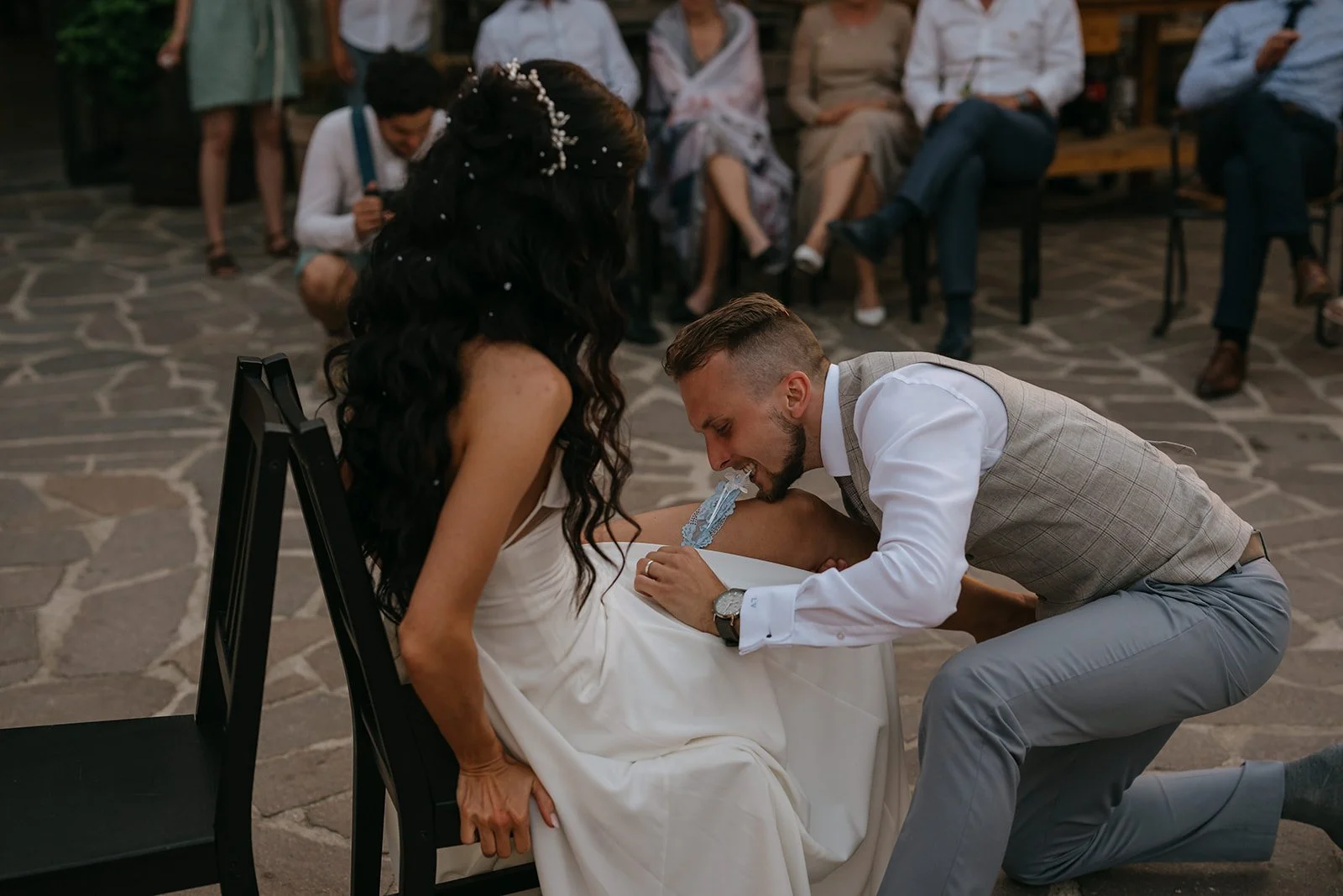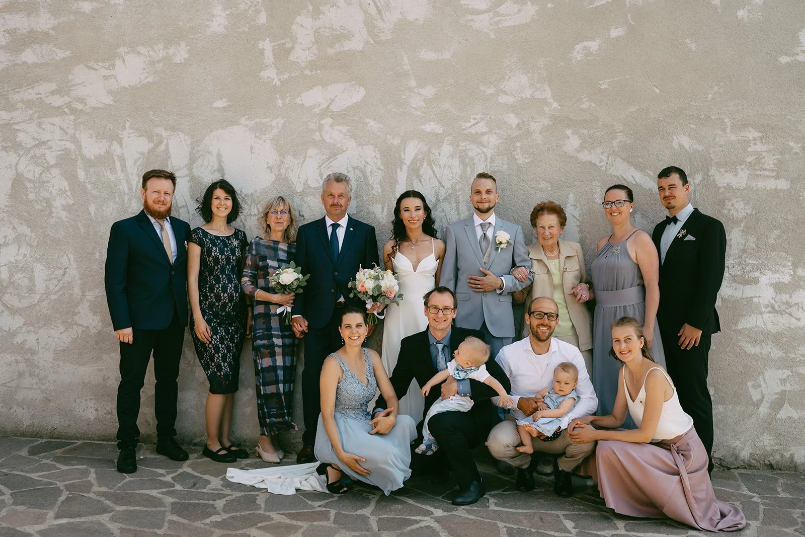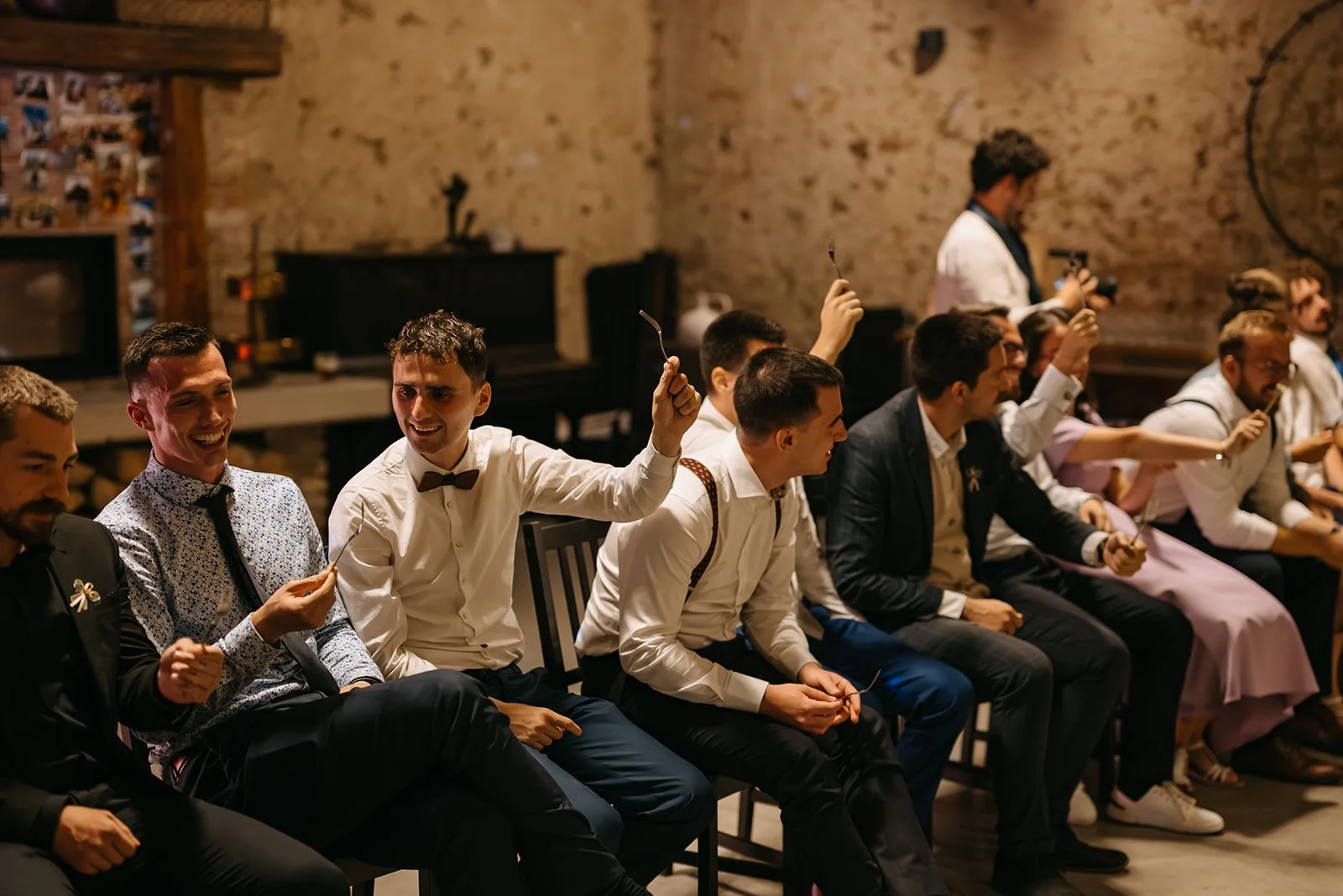 Místo komorního dne se tu sešla velká banda kamarádů, spousta smíchu a energie, která byla cítit od první chvíle. Nechyběly ani vtipné momenty, jako třeba „flower boys“, kteří před obřadem rozdávali vychlazené nápoje a hned nastavili tón celému dni. Uvolněný, lehký, bez zbytečné vážnosti.