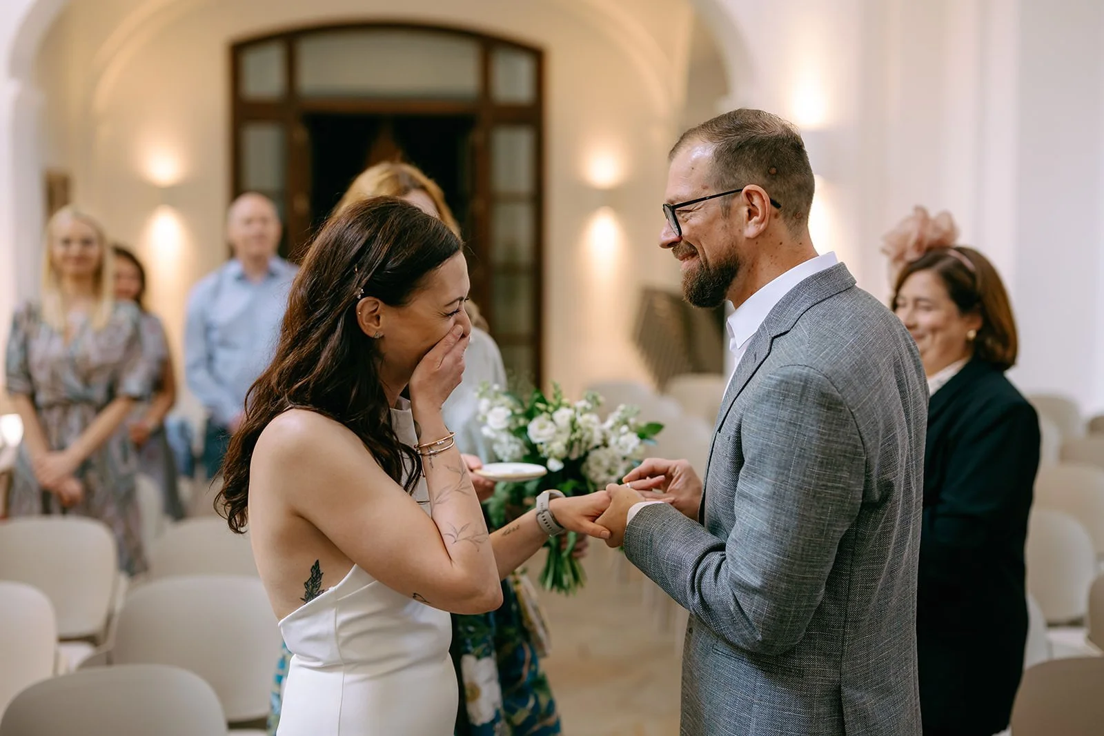 Celkově jsme spolu strávili jen tři hodiny, ale i tak vznikla plnohodnotná svatební galerie. A jako bonus – další mezinárodní svatba, kde jsem si mohla zase trochu oprášit angličtinu. Tyhle malé, vícejazyčné svatby mají zvláštní kouzlo a baví mě čím dál víc.