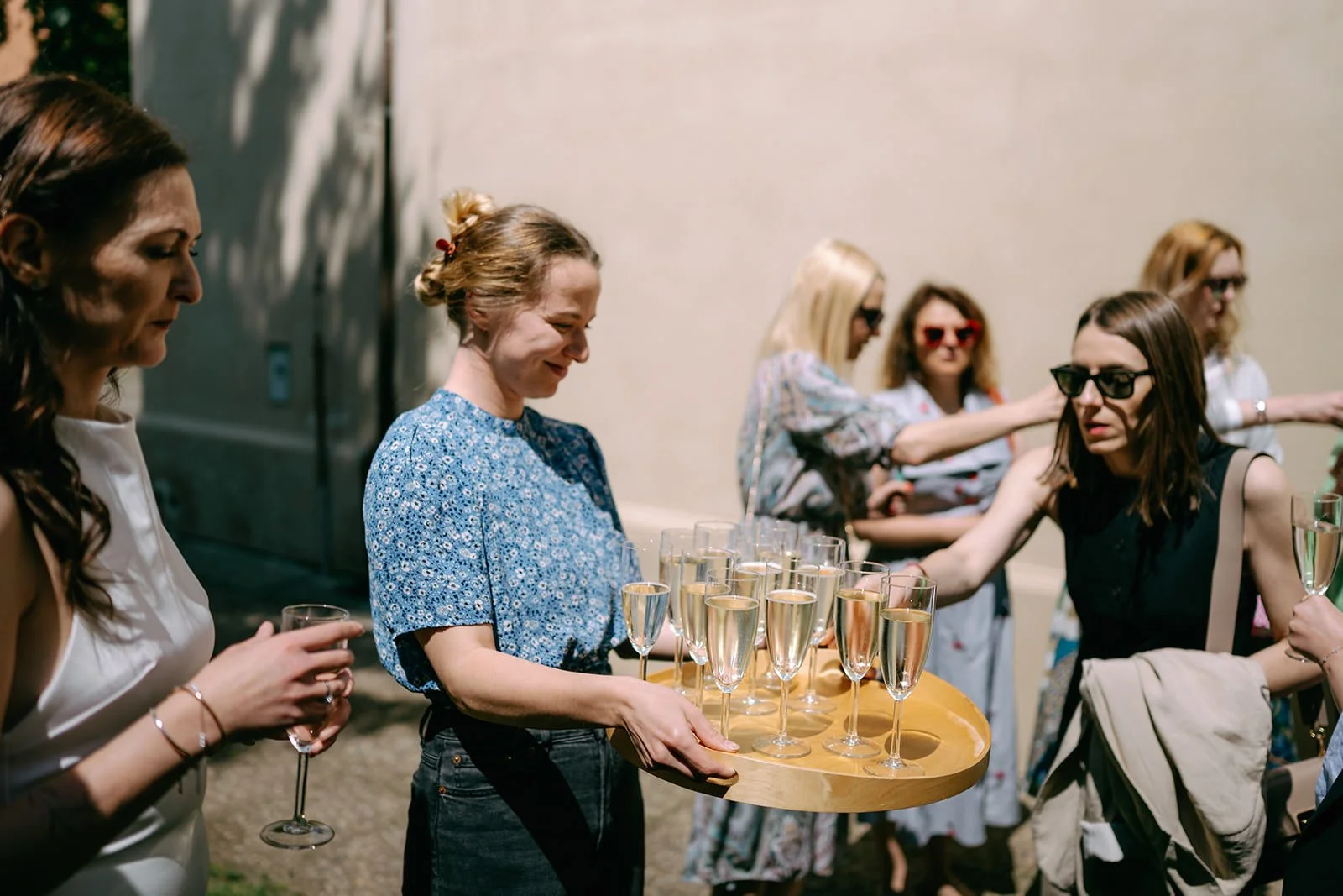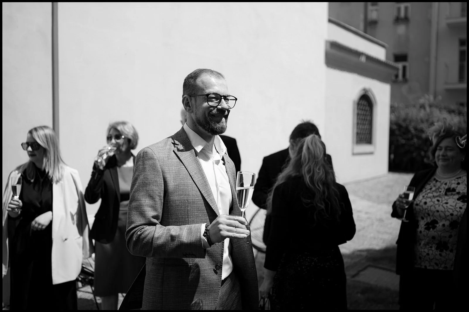 Po obřadu jsme si dali krátkou procházku ulicemi Žižkova v teplém letním odpoledni. Bez spěchu, bez přesunů přes půl města. Jen město, světlo, smích a pár společných fotek. Potom už následoval přesun do restaurace, kde se jedlo, povídalo a užívala se dobrá společnost.