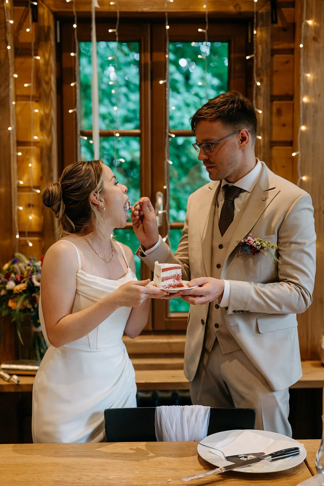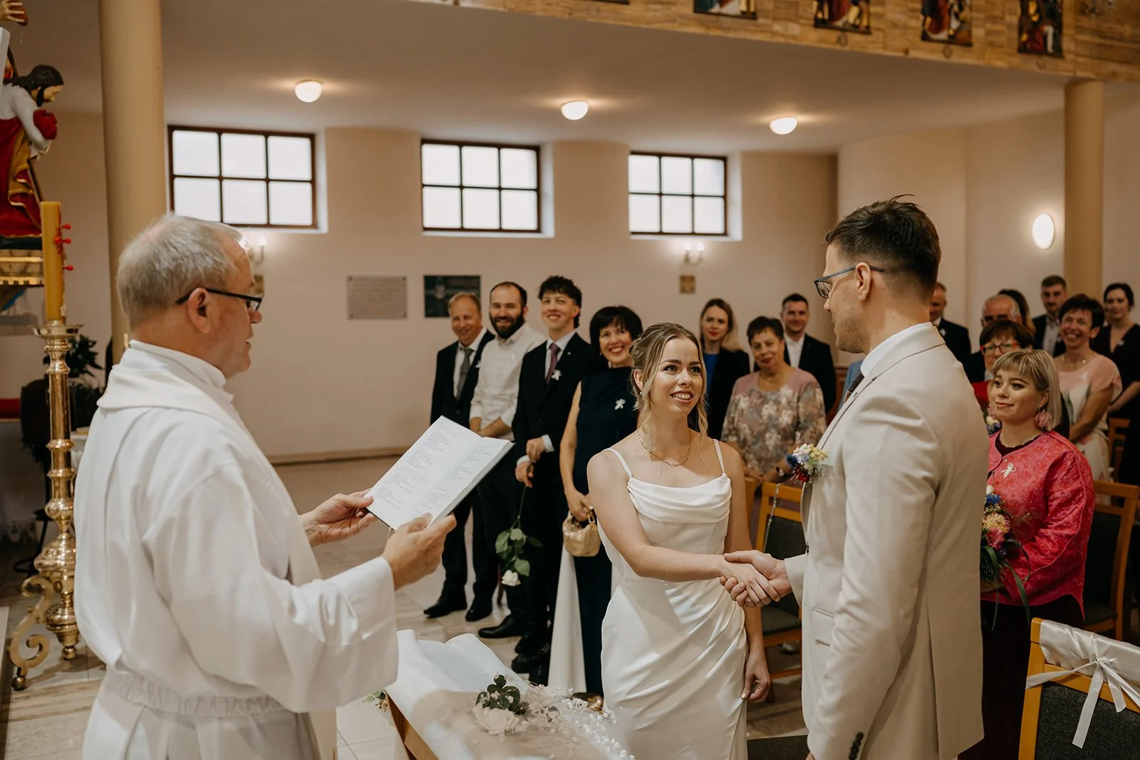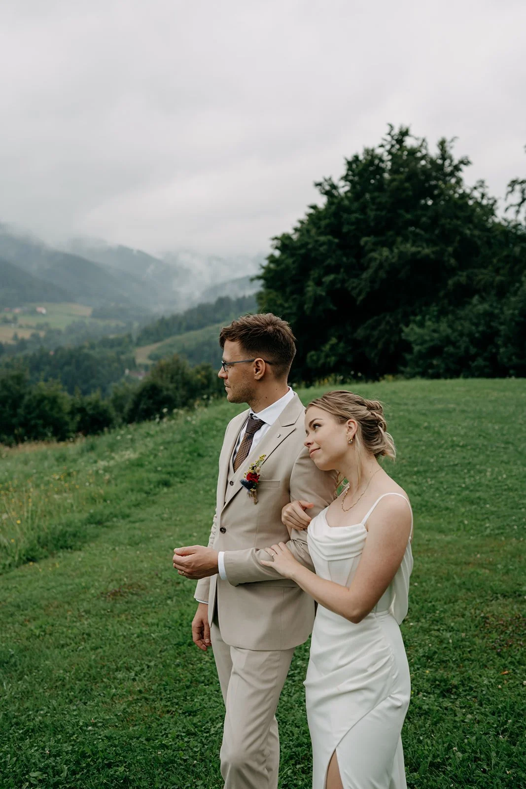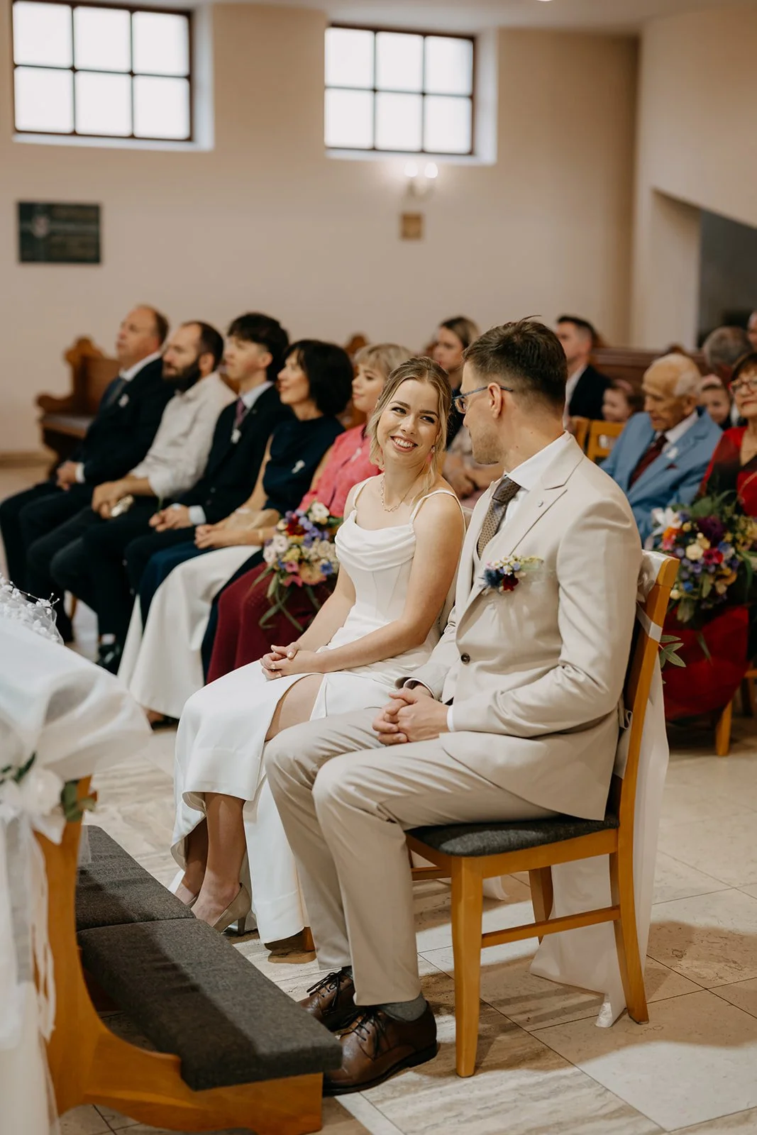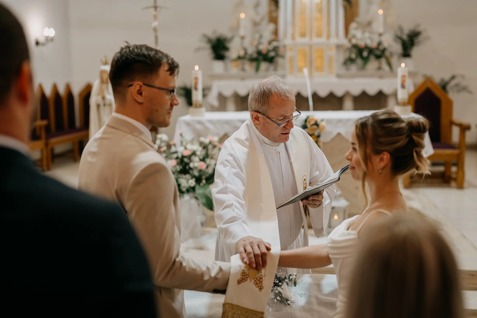 Svatba se konala v Beskydech. Den jsme začali obřadem v kostele a pak se přesunuli do kopců na svatební místo, kde už to celé plynulo vlastním tempem. Déšť nikoho nezastavil – spíš ještě víc semkl lidi dohromady.