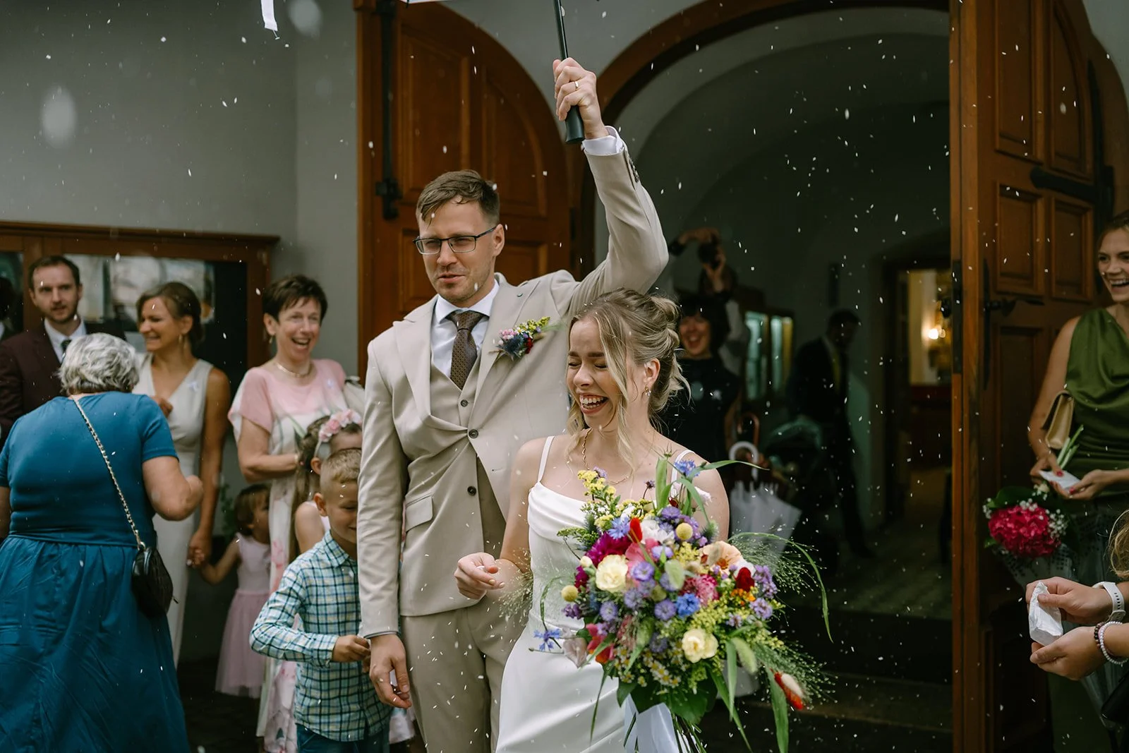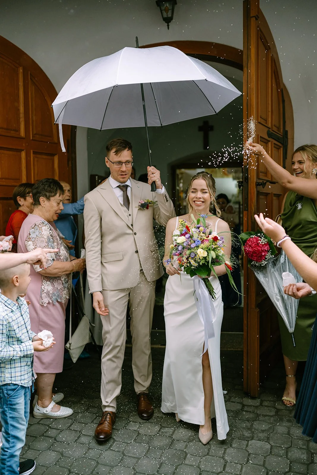 Další krásný pár a další upršená svatba roku 2025. Déšť se letos stal tak trochu součástí příběhu – a svatba Hartlových je dalším důkazem, že to vůbec není na škodu.