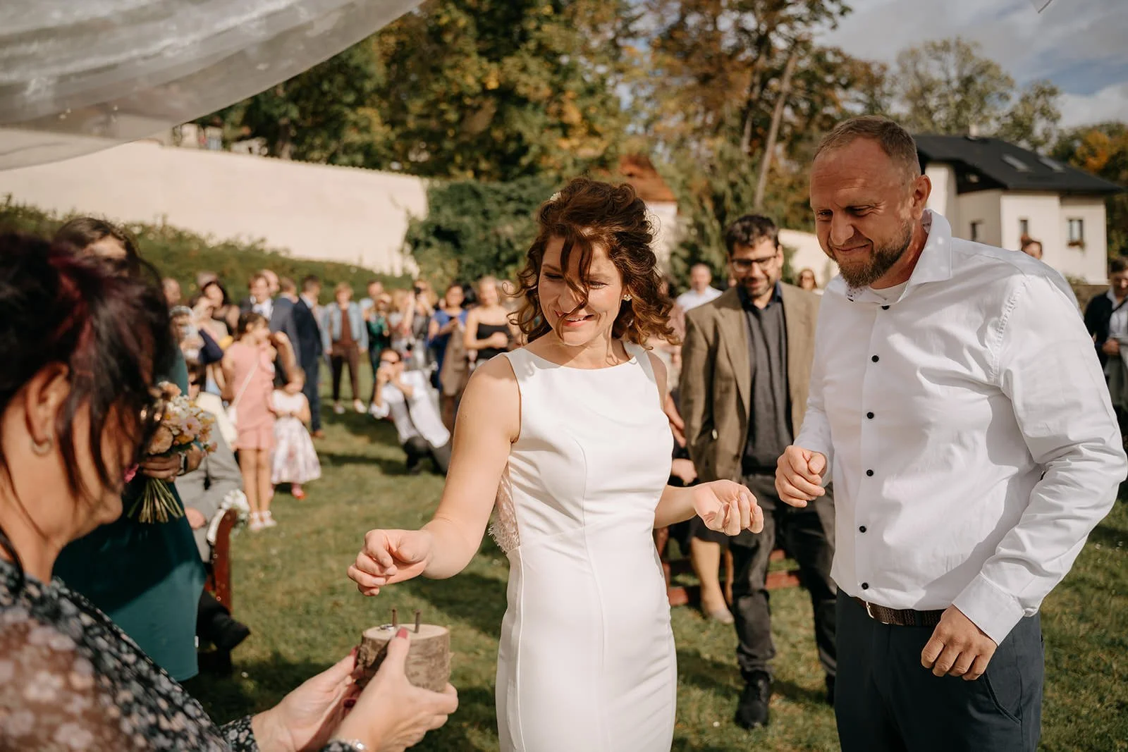Už z naší písemné komunikace mi bylo jasné, že to bude moc příjemné odpoledne. A opět vyšlo nádherné počasí. Celé dopoledne lilo jako z konve a před obřadem nám vylezlo i hřejivé sluníčko.